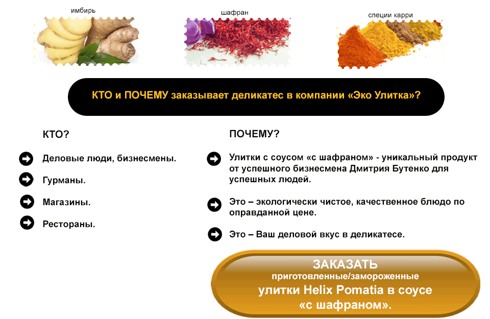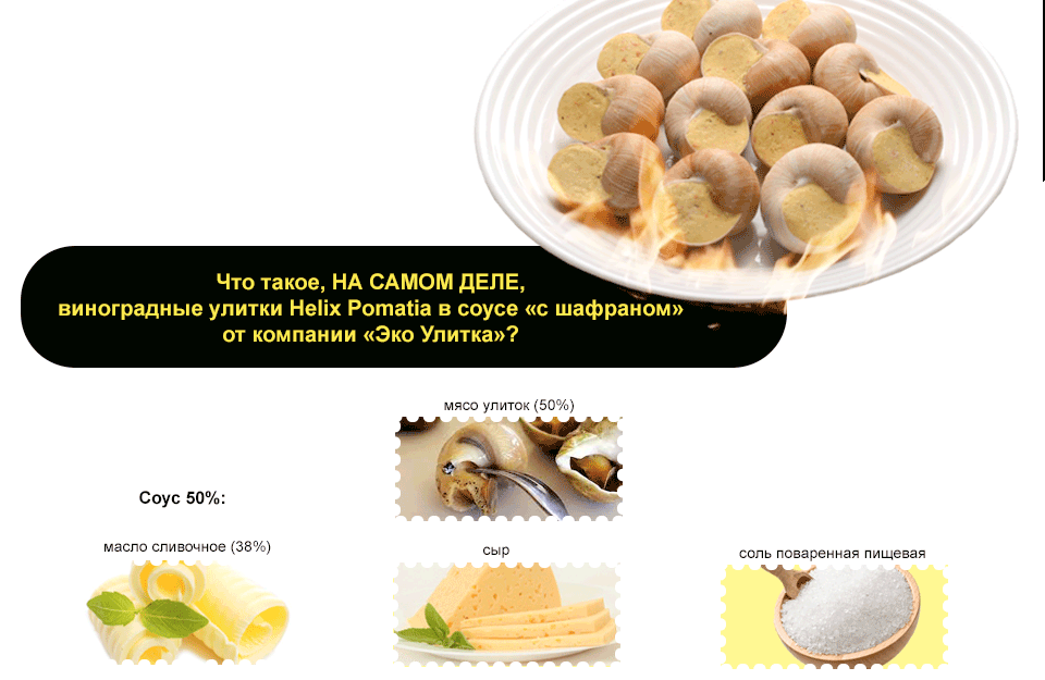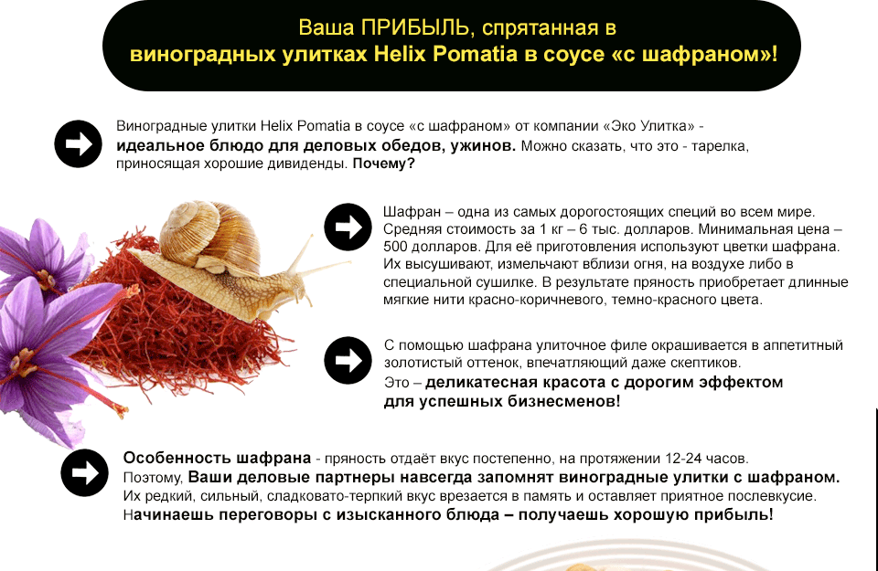 Улитки виноградные Helix Pomatia в соусе «с шафраном»